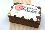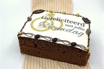Heerlijk malse, ambachtelijke koek met een persoonlijke tekst naar wens! We hebben hieronder wat voorbeelden aangegeven (bij ‘maak hier uw keuze), maar je kunt je eigen tekst eventueel hieronder invullen, dan maken wij er iets moois van.