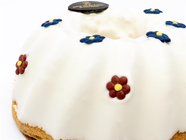 Botermalse roombotercake, overgoten met een vanilletopping en gedecoreerd in de sfeer van het seizoen…..