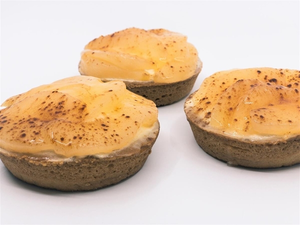 Lekker gebakken linzenbodempje met banketbakkersroom, peer en subtiel bestrooid met kaneel…zó lekker bij een verse koffie of thee!